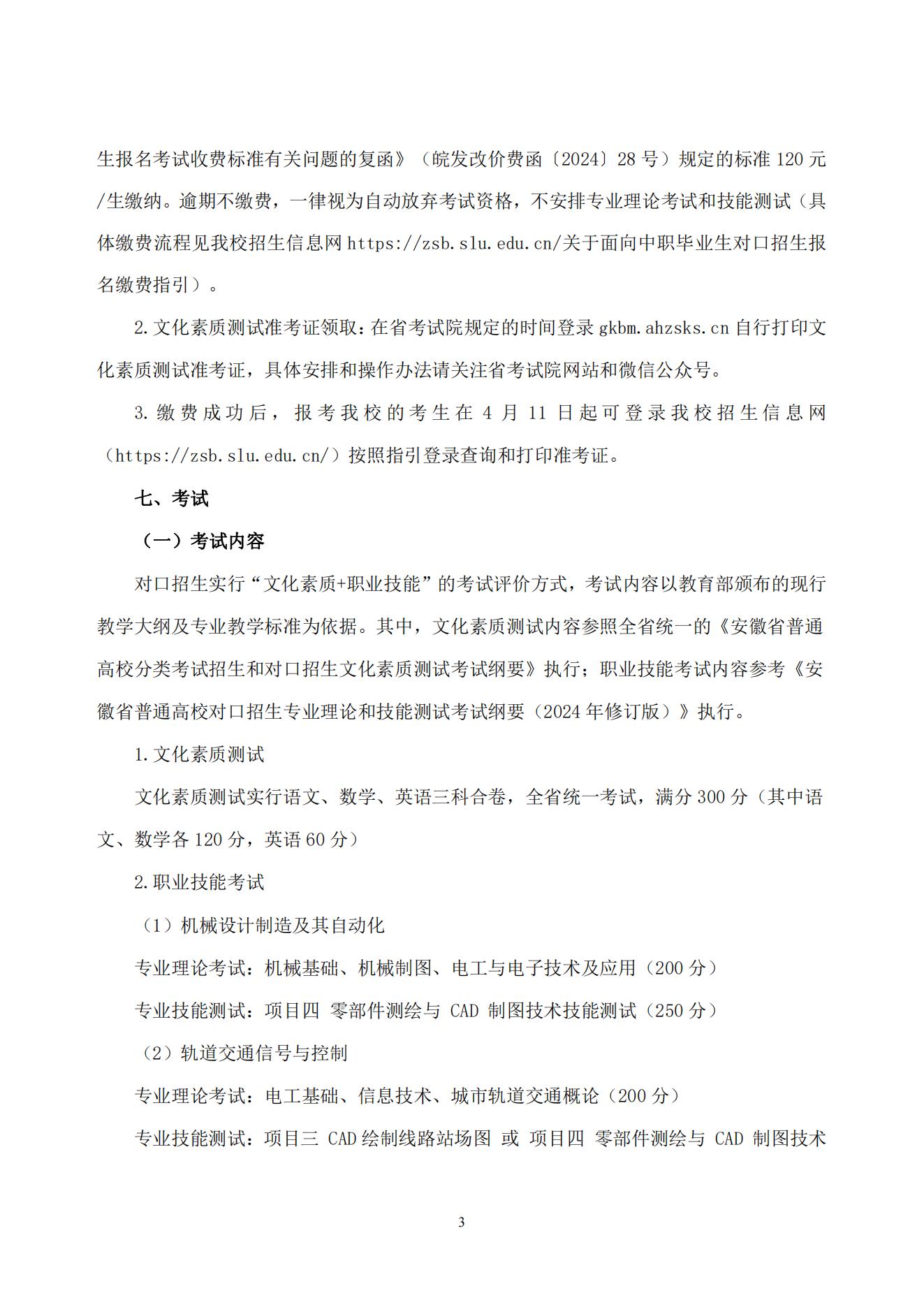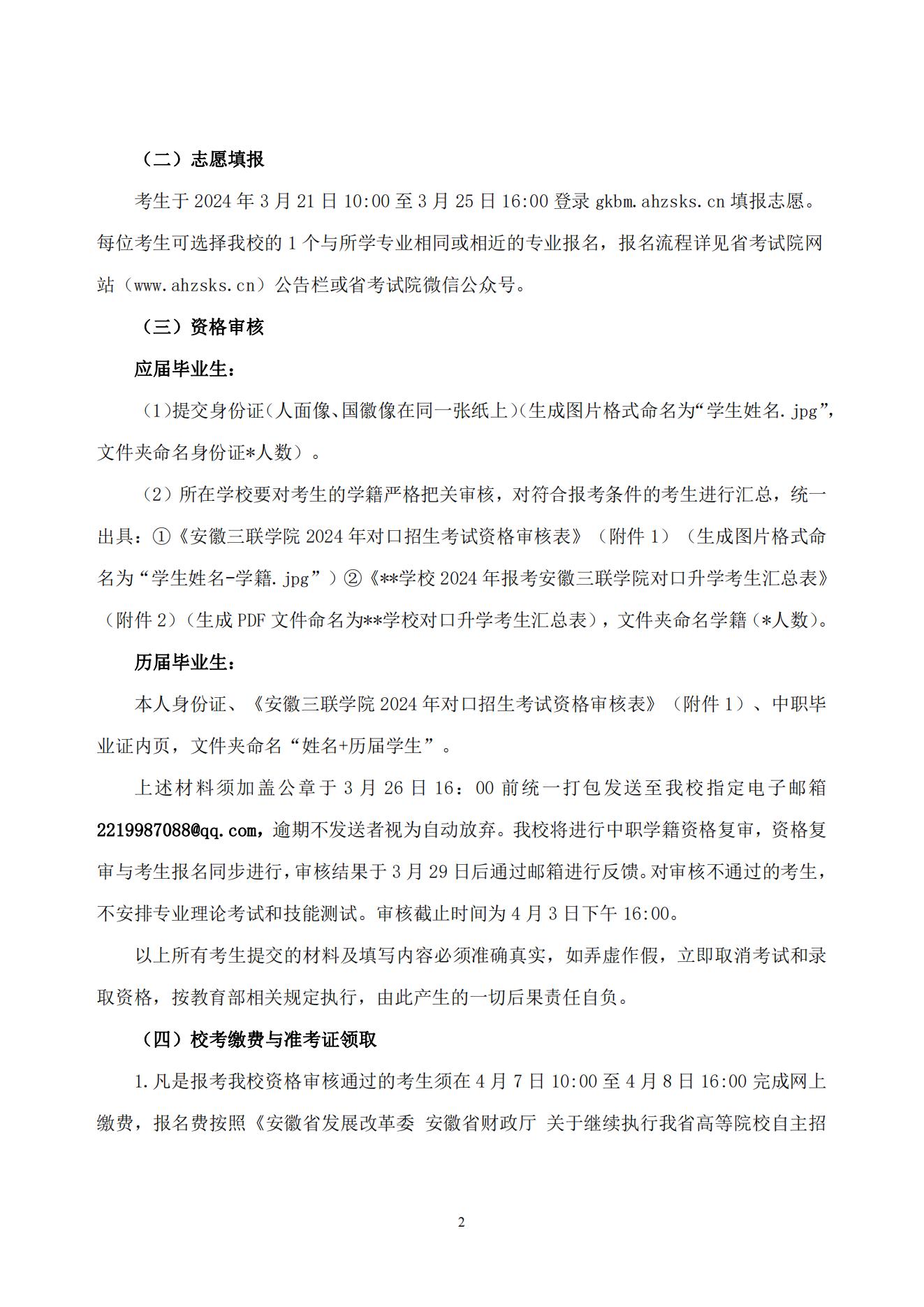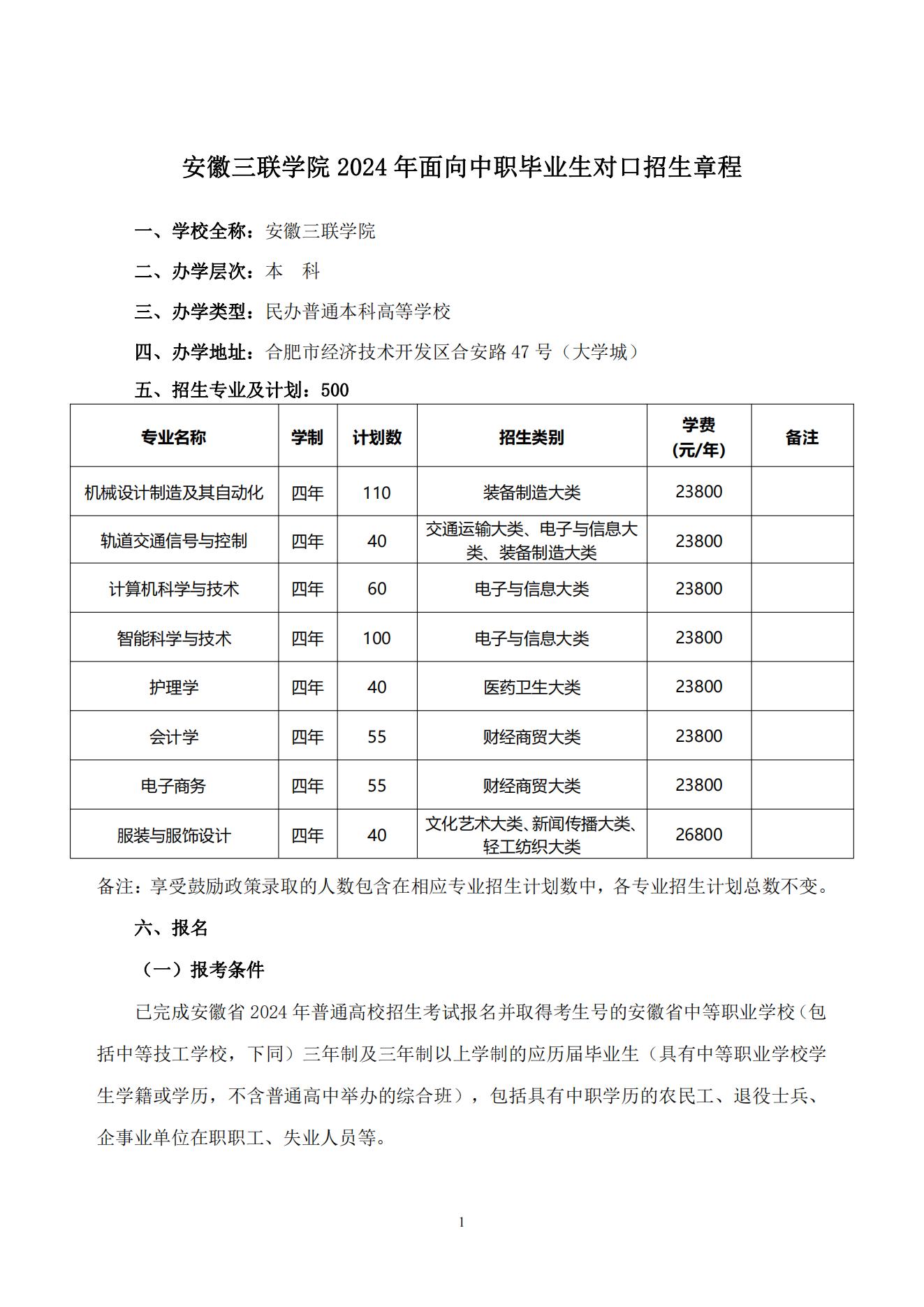 安徽三联学院 2024 年面向中职毕业生对口招生章程