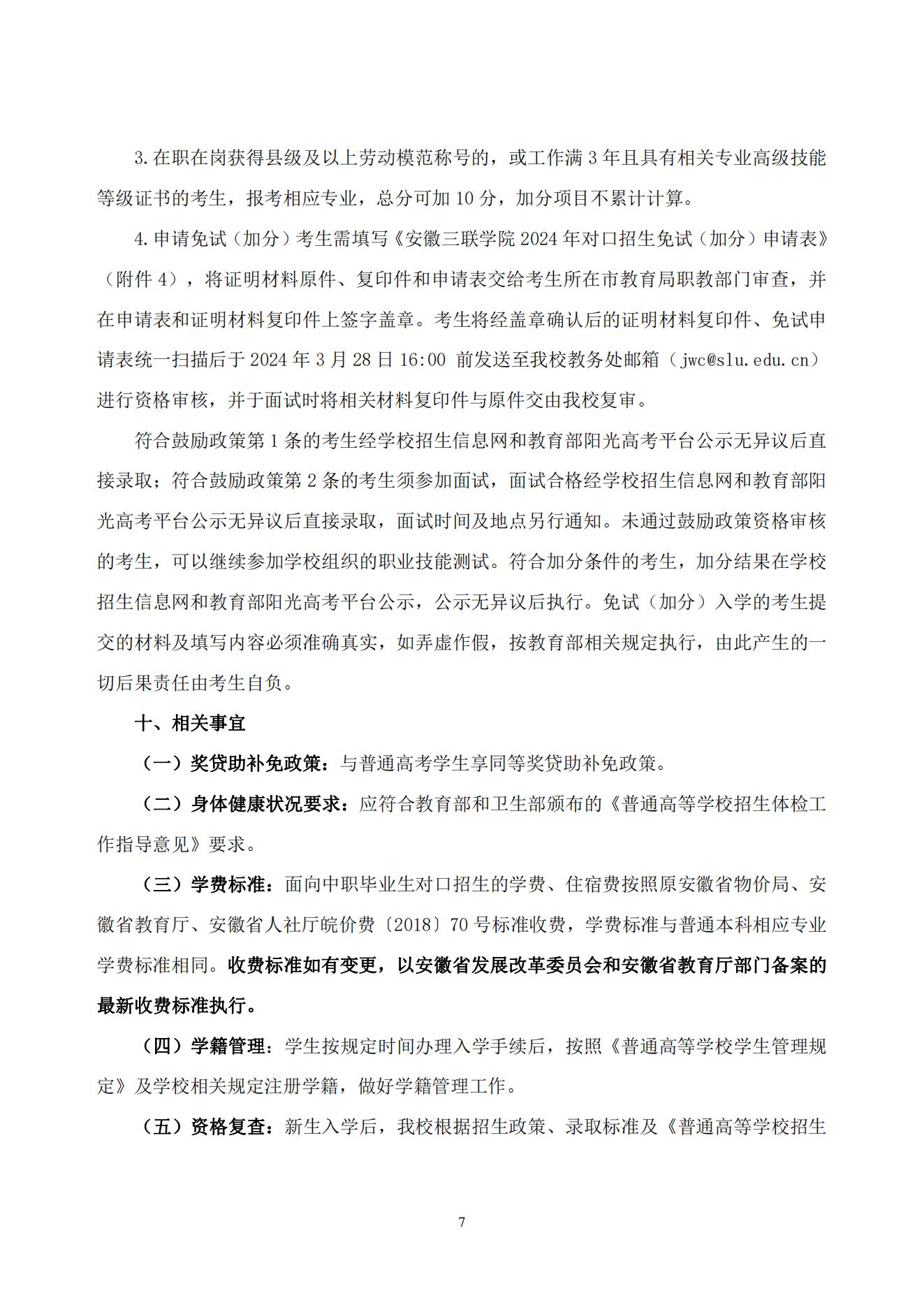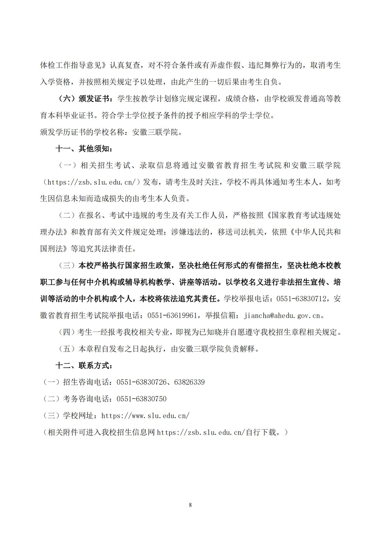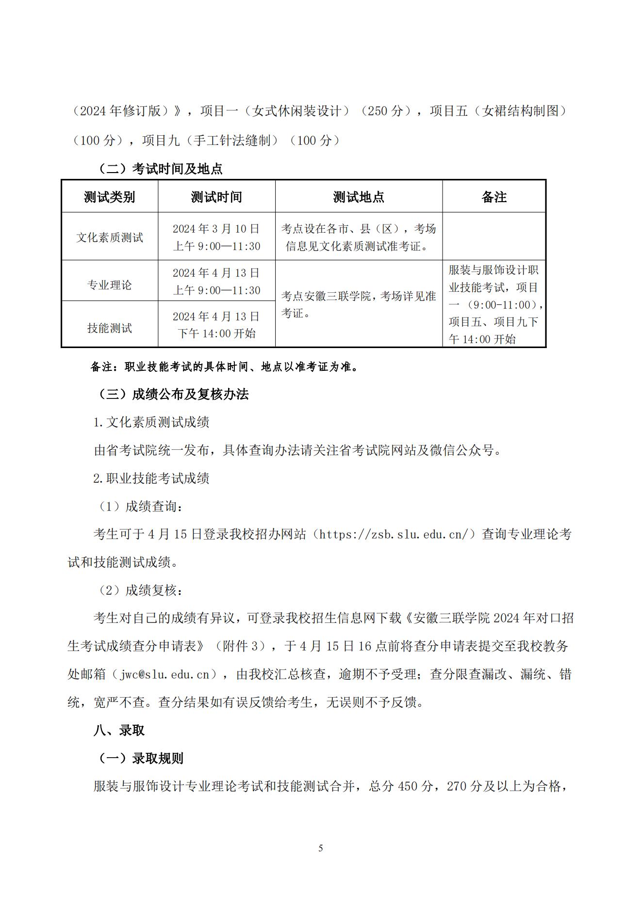 安徽三联学院 2024 年面向中职毕业生对口招生章程